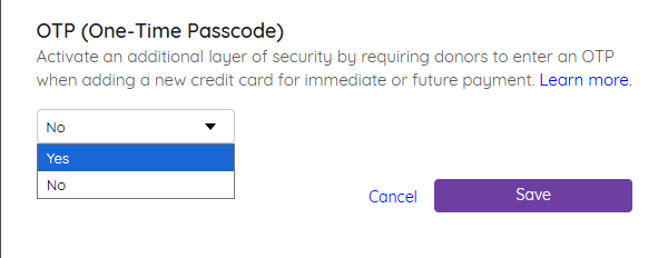 - By enabling this additional step in the card adding process, this protects your organization from fraudulent credit card attempts on your payment forms.